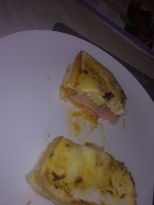 These are pictures of food you shouldn't be eating when losing weight but I did. Both from the celebrate everything Elvis night. One was a cupcake called Elvis. The other was....AN ELVIS SAMMICH with a twist. Bread with peanut butter spread on both sides... fried banana and bacon with cheese and tabasco sauce then whole samich gets fried. I had one bite. And it's not as disgusting as it sounds but it is a heart attack waiting to get you!